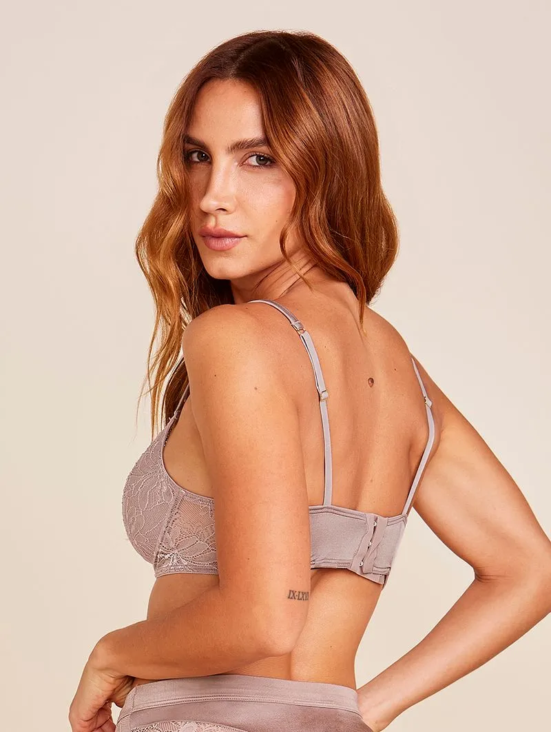 • Sutiã modelo meia-taça em microfibra acetinada e renda